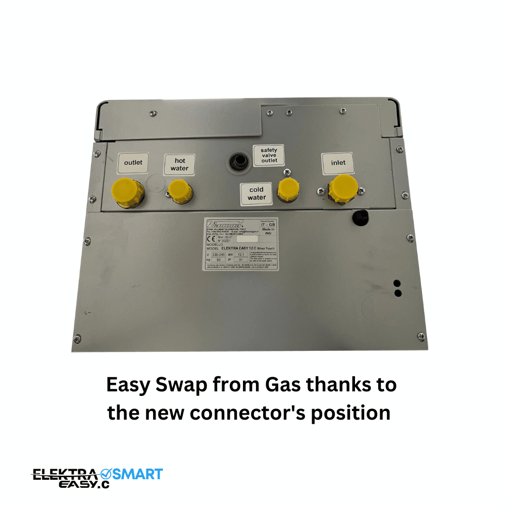 - New design and upgraded model: the new position of the connectors makes the swap from a gas boiler to an ELEKTRA EASY.C, easier than before