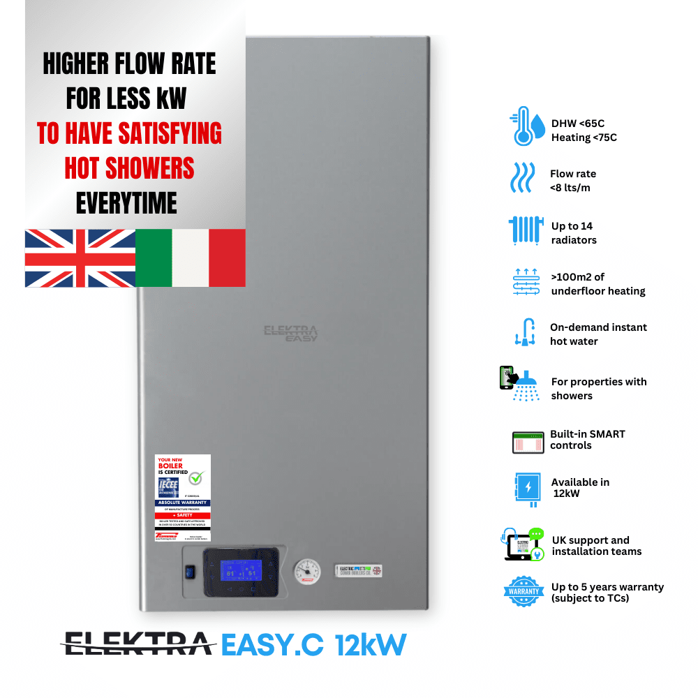 Our ELEKTRA electric boilers have been developed in the UK, manufactured in Italy and fully certified by UK/EU certification bodies.